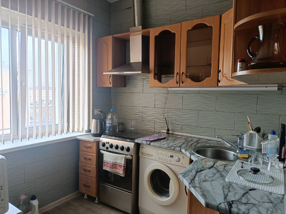 Квартира укомплектована мебелью: кухонный гарнитур, системы хранения, спальные места. Из техники остаются кондиционер, холодильник, стиральная машина и водонагреватель.